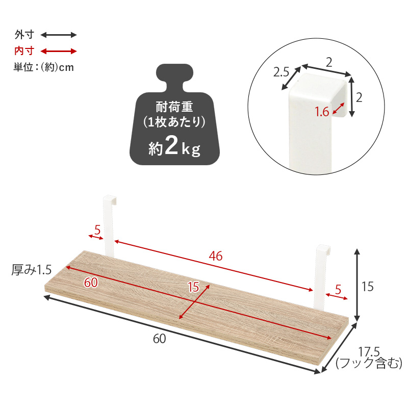 • 品名 突っ張りウォールラック専用棚板 2枚組 幅60