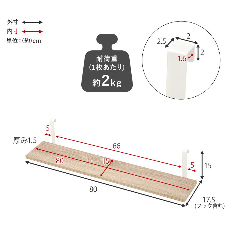 • 品名 突っ張りウォールラック専用棚板 2枚組 幅80