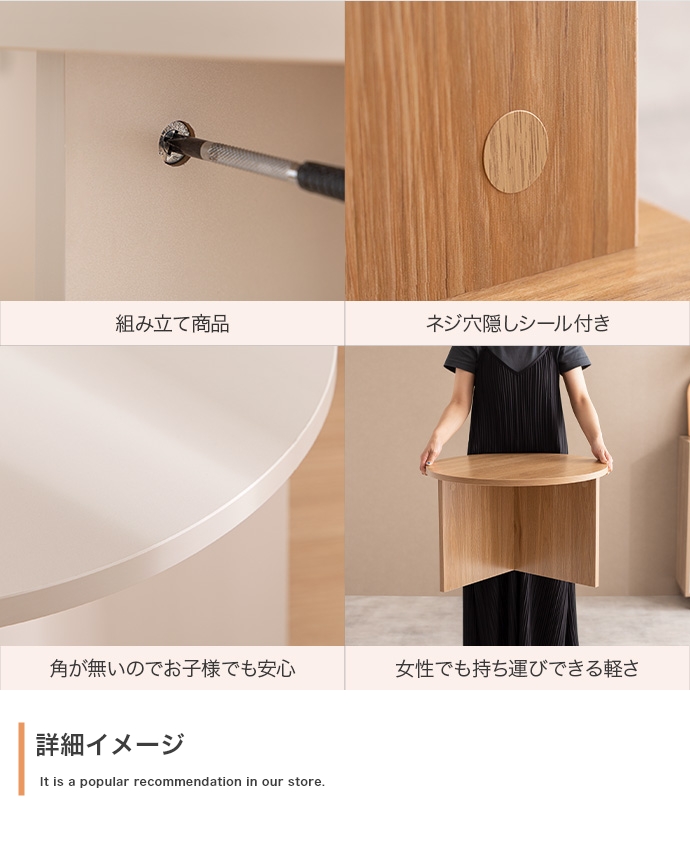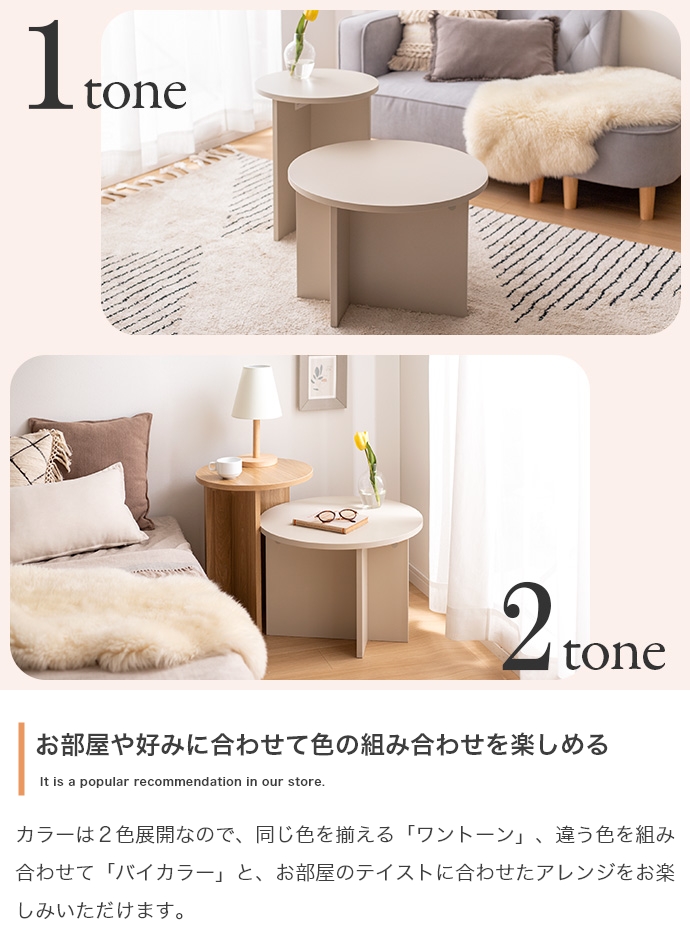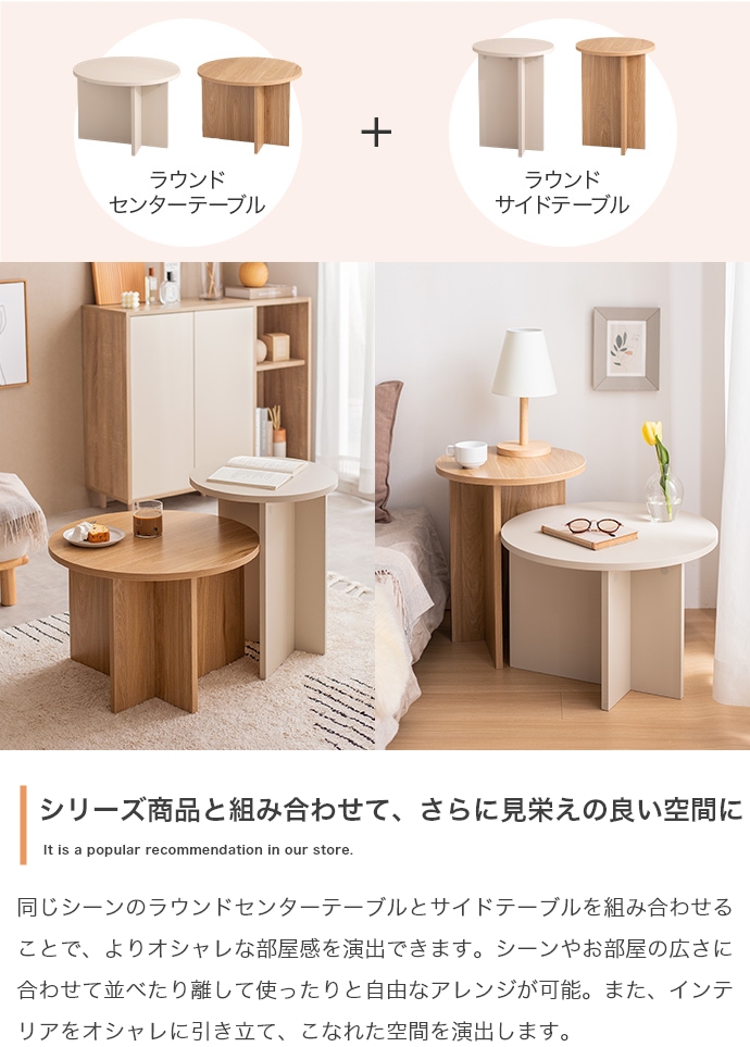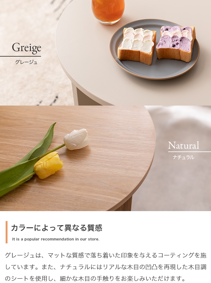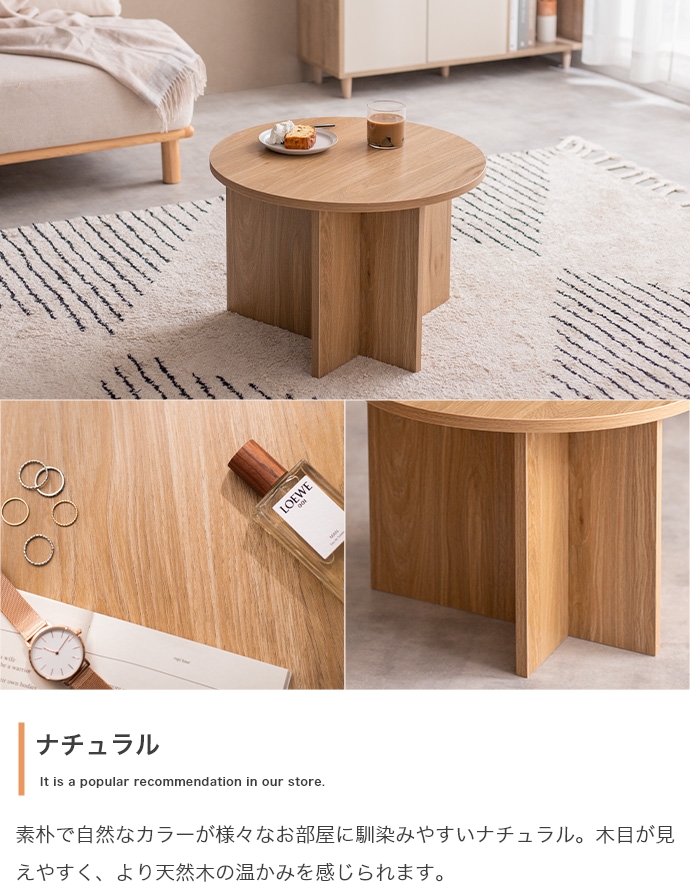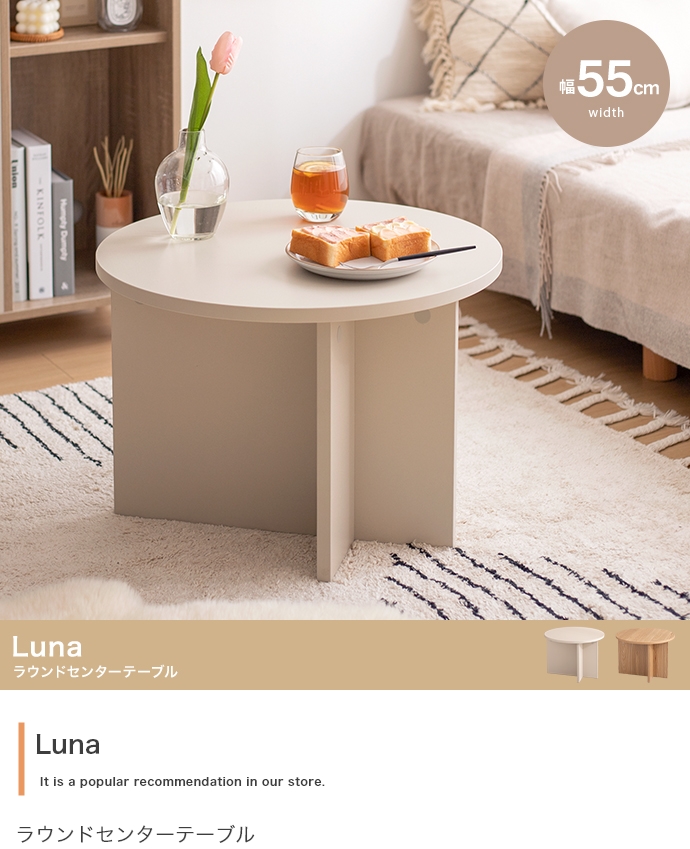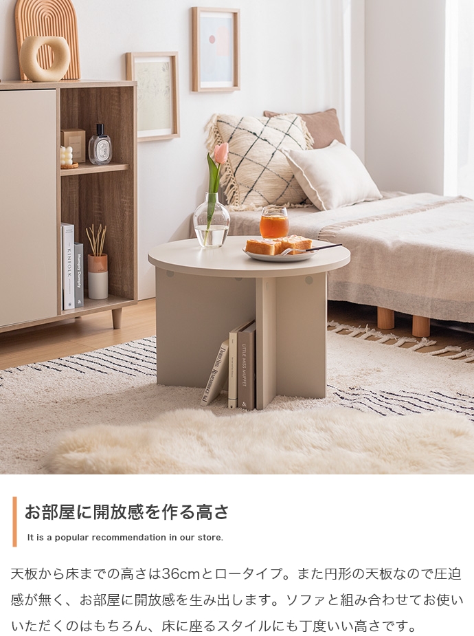 丸い天板と個性的な脚部がこなれた空間を演出する『Luna(ルナ)』ラウンドセンターテーブル。優しく落ち着いた色合いと、丸いフォルムの愛嬌たっぷりなディテールは、韓国風インテリアはもちろん様々なテイストのお部屋にも馴染みます。省スペースながらも、ワンルームでのメイン使いにおすすめなサイズ感で、一人暮らしやワンルームの方にもおすすめです。
