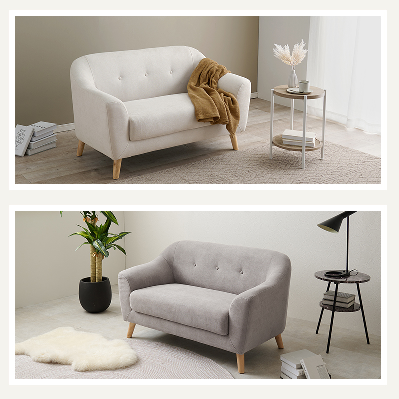 滑らかな曲線フォルムと、大人可愛いカラーがポイント。スペースの限られたひとり暮らしにもぴったりなコンパクトサイズ。一人暮らしのワンルームや子供部屋にもおすすめです。コンパクトながら、奥行はしっかりと確保したサイズで特別な一人時間を過ごせます。脚を外すとローソファーとしてもお使い頂けます。