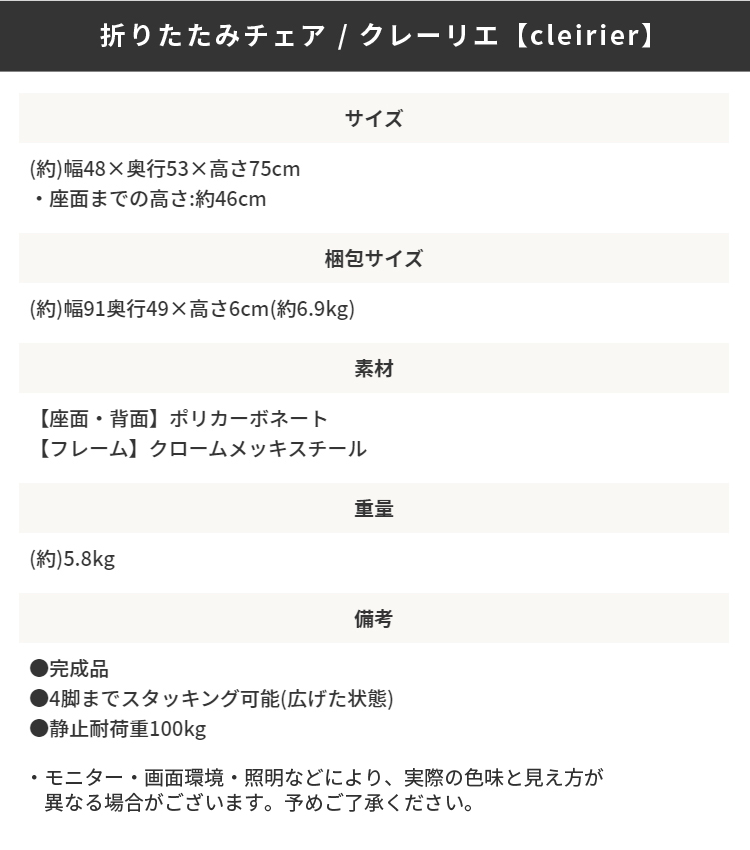 幅48cm×奥行き53cm×高さ75cm(座面高約46cm)