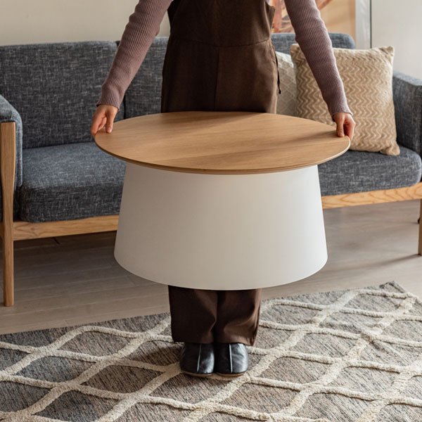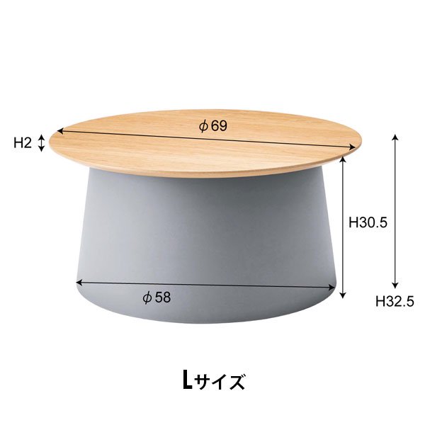 天板と脚部の異素材の組み合わせが特徴的なラウンドテーブル。 センターテーブルやサイドテーブルとしての用途だけでなく、 サイズ違いで組みあわせることで使い方の幅が広がります。