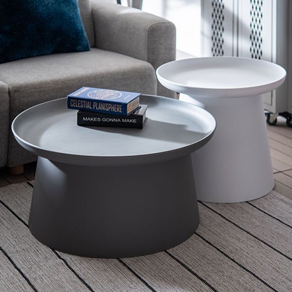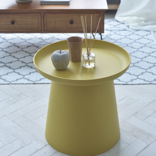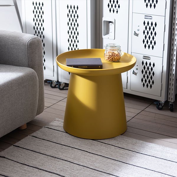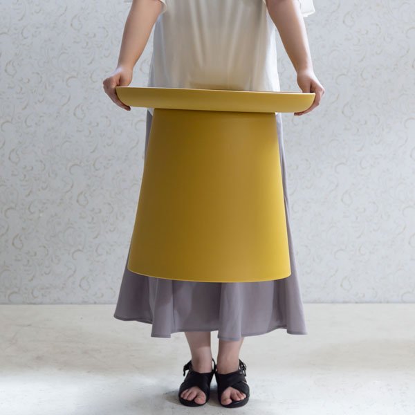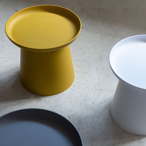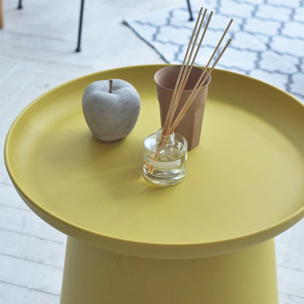 印象的なシルエットのラウンド型テーブル。 耐久性にすぐれ、ホームユースに限らずパブリックスペースでのご使用にも適しています。、 サイズ違いで組みあわせることで使い方の幅が広がります。