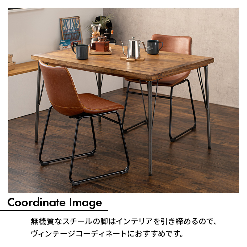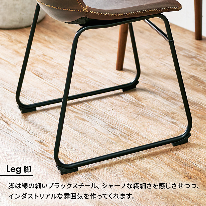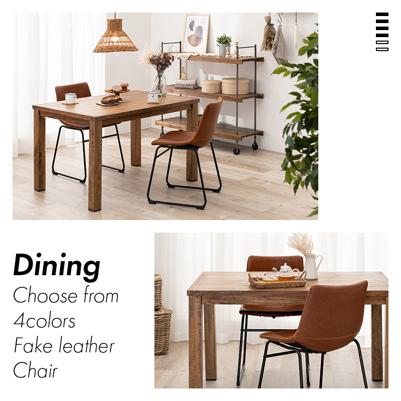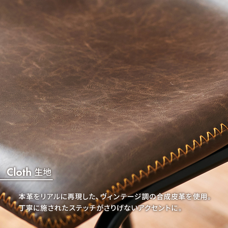 本革をリアルに再現した合成皮革を使用。ヴィンテージ調のダイニングチェアーです。まるで革を感じさせる風合いが魅力的。家にいながらレトロ風かふぇにいるような贅沢な気分を味わえます。4色から選べる2脚セット。