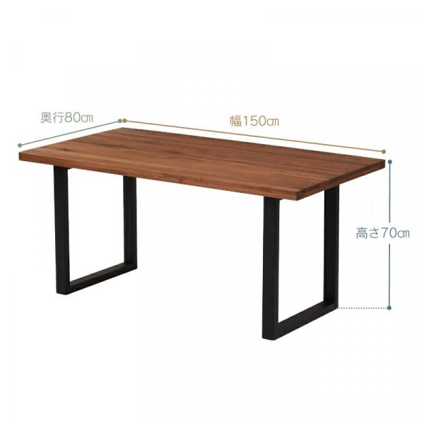 ウォールナット無垢材とブラック色の脚の組み合わせがモダンなダイニングテーブル。