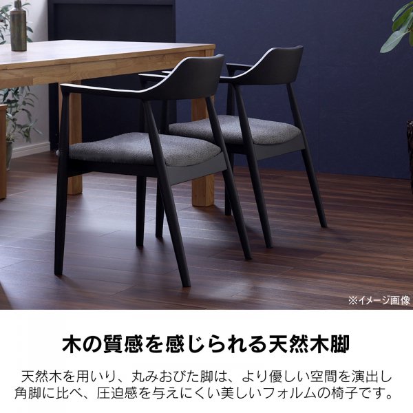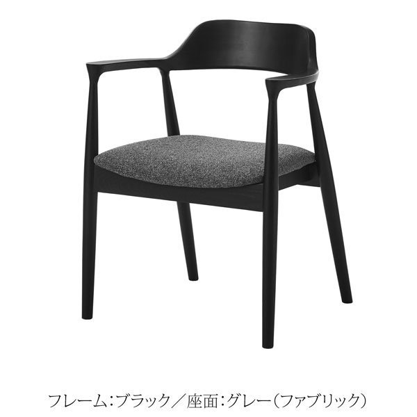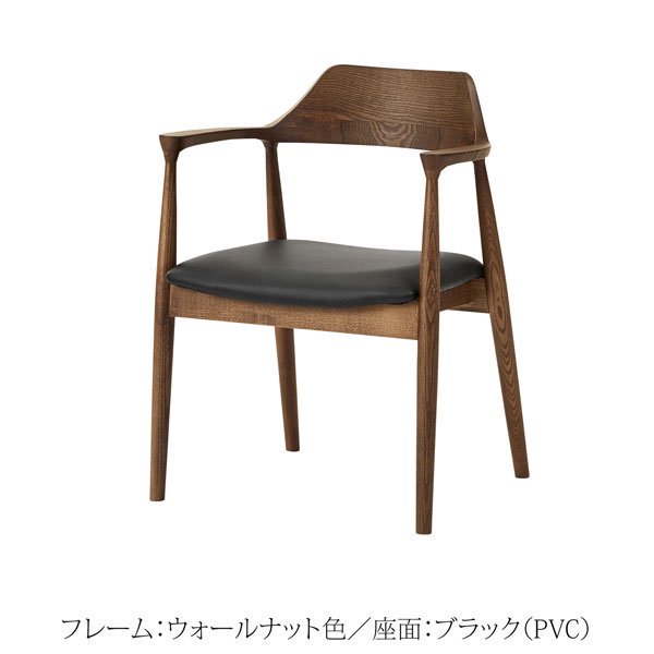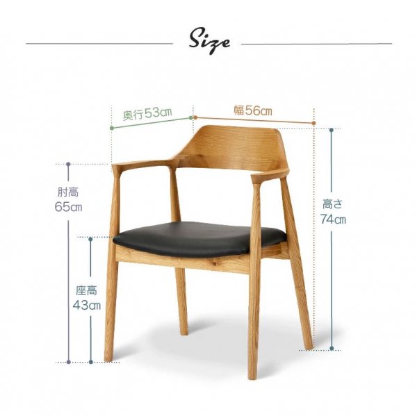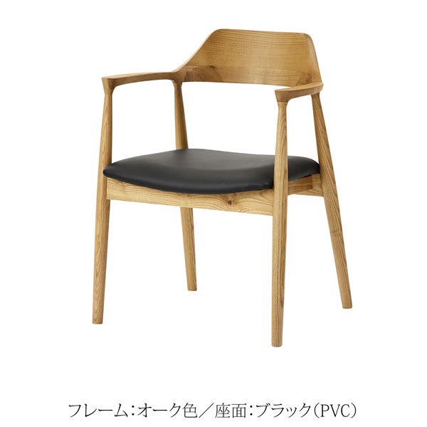 美しい木目のアッシュ無垢材のダイニングチェア。肘と背面は美しい曲線を描いており、身体をやさしく包み込みます。ゆったり座れるワイドな座面。