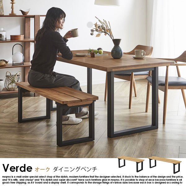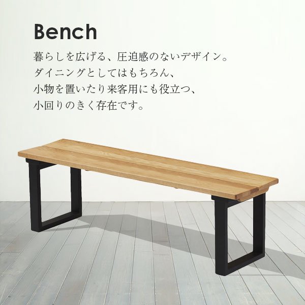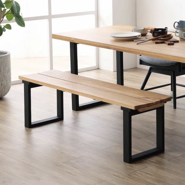 オーク無垢材とブラック色の脚の組み合わせがモダンなダイニングベンチ。