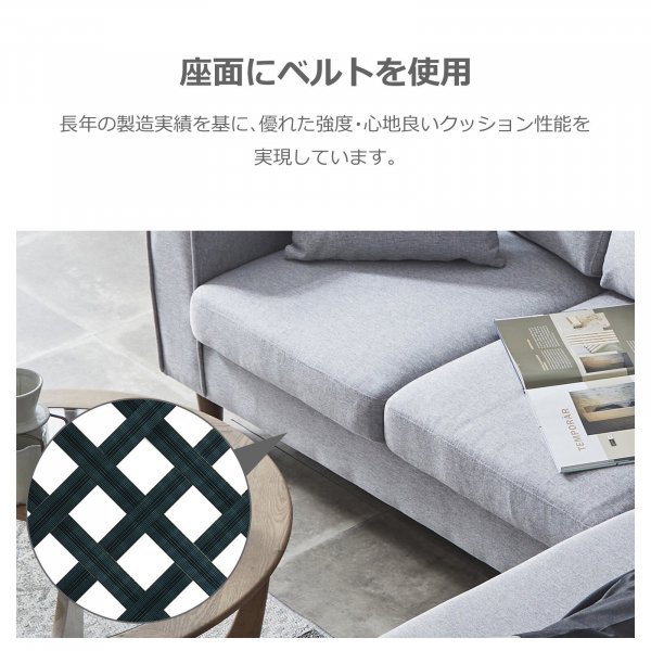 ファブリック 内部構造:ウェービングベルト 背構造:ウレタンフォーム、シリコンフィル 座面構造:チップウレタン、ウレタンフォーム