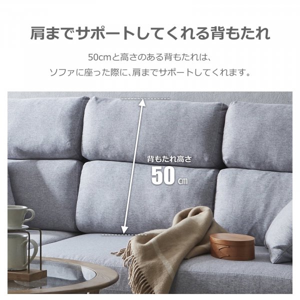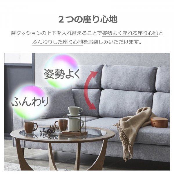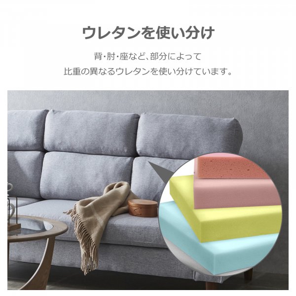 ※ソファ設置の際は、壁から少し離してお使い頂きますようお願いいたします。(目安:10cm 程度)壁に密着した状態でご使用されると、壁紙の種類によっては色移りや変色の恐れがあります。