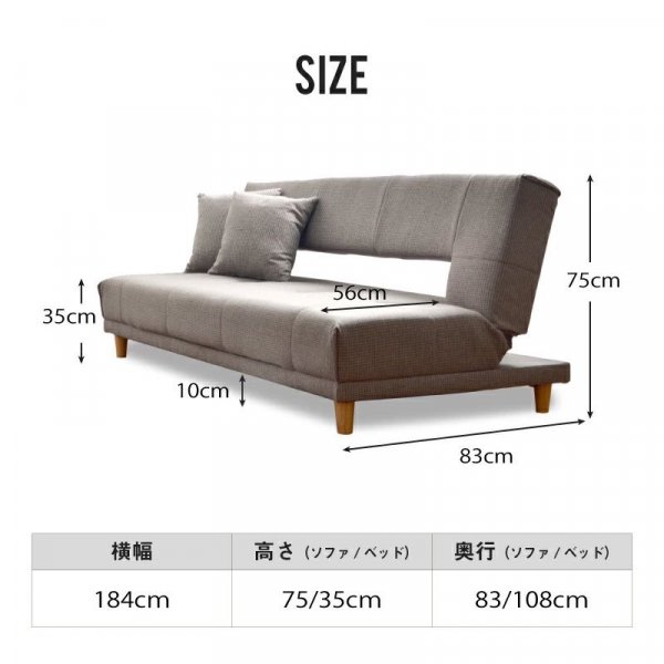 幅184cm×奥行83/108cm×高さ75cm(座面高35cm)・36kg