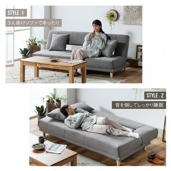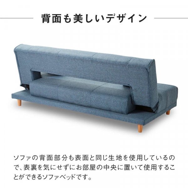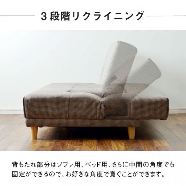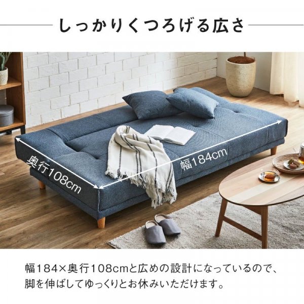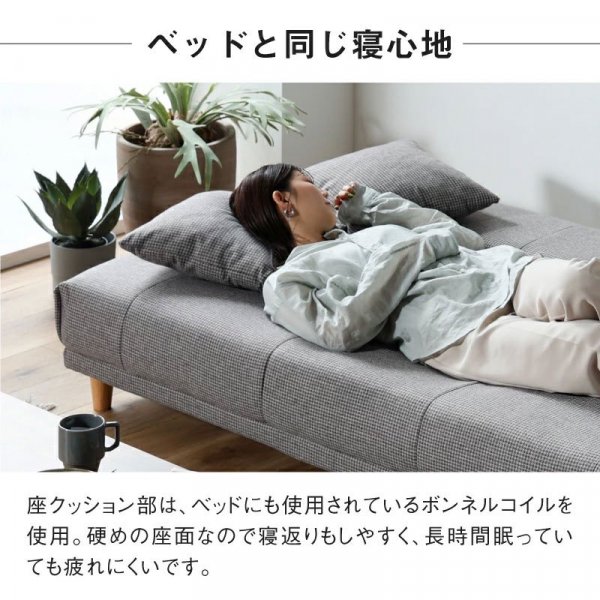普段はソファとして、背を倒せばベッドとしても使える1台2役のソファベッド。中野コイルにはマットレスで使用するコイルと同じボンネルコイルを採用しているので寝心地が良く、ぐっすり眠れます。背もたれ部分は3段階のリクライニング。幅184×奥行108cmと広めの設計になっているので脚を伸ばしてゆっくりとお休み頂けます。