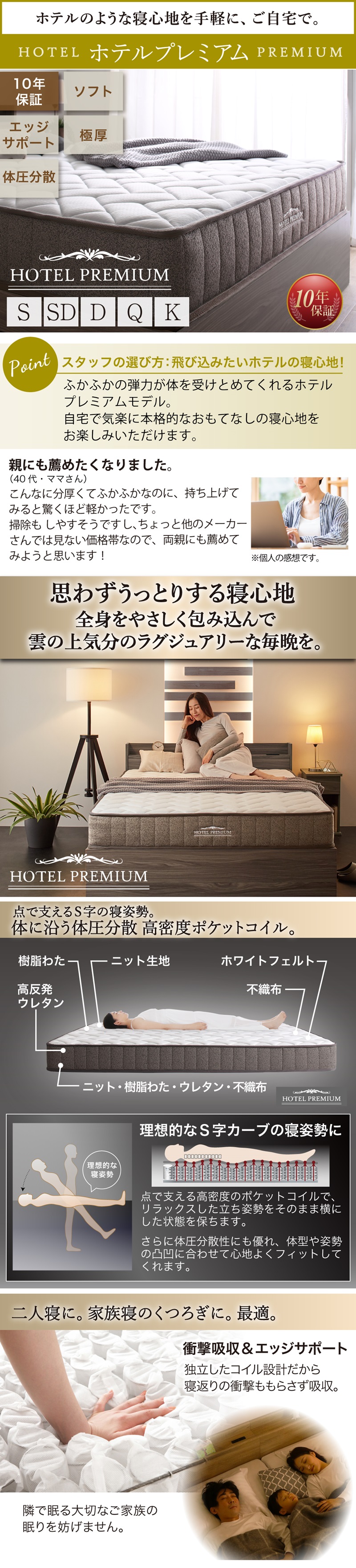 マットレス:【詰め物(コイル)】 高密度ポケットコイル、SWRH72B・