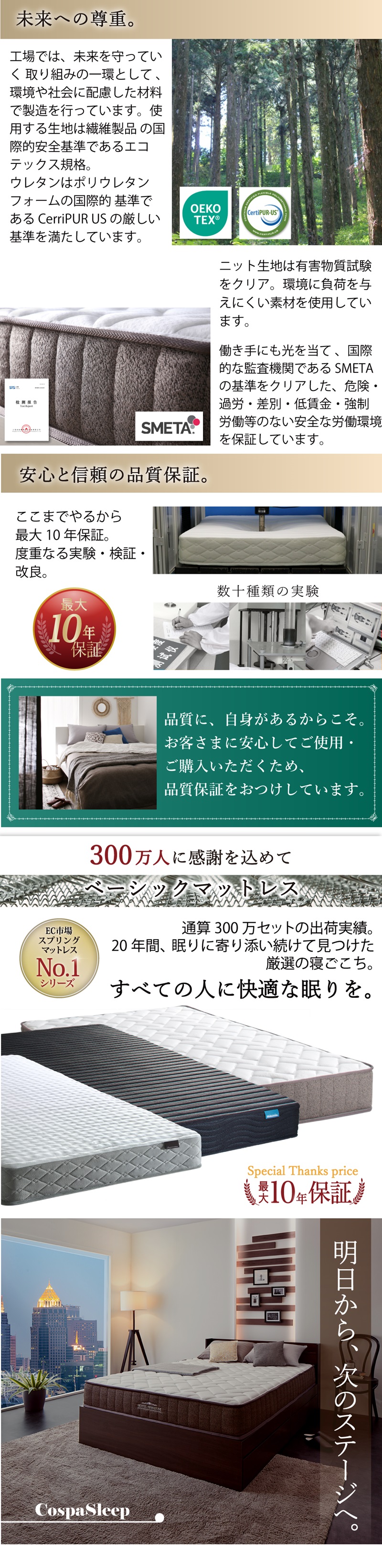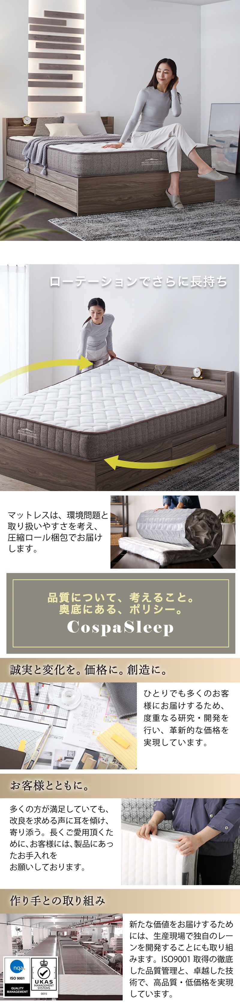 ベッドフレーム:インドネシア マットレス:中国 (企画・設計・デザイン:日本)