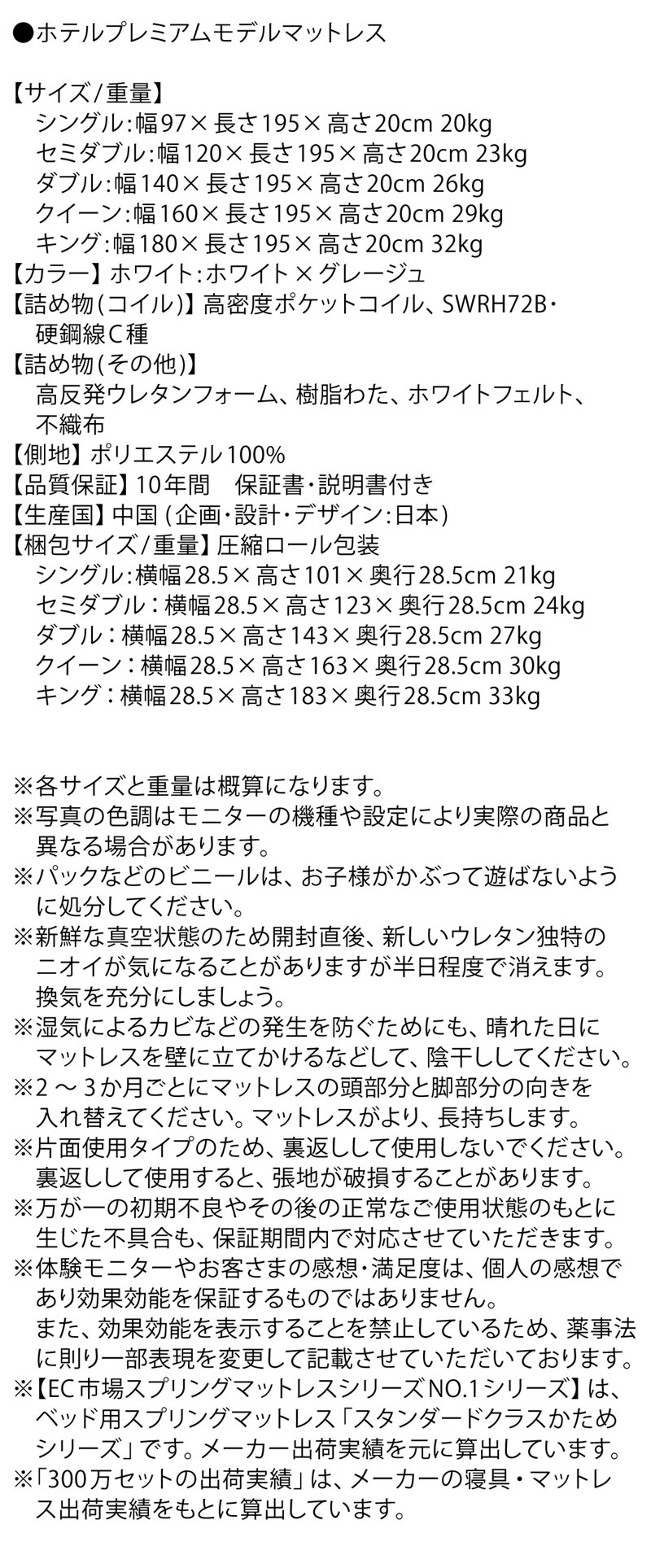 キング:(約)横幅188cm×高さ11.5cm×奥行33cm 28kg,