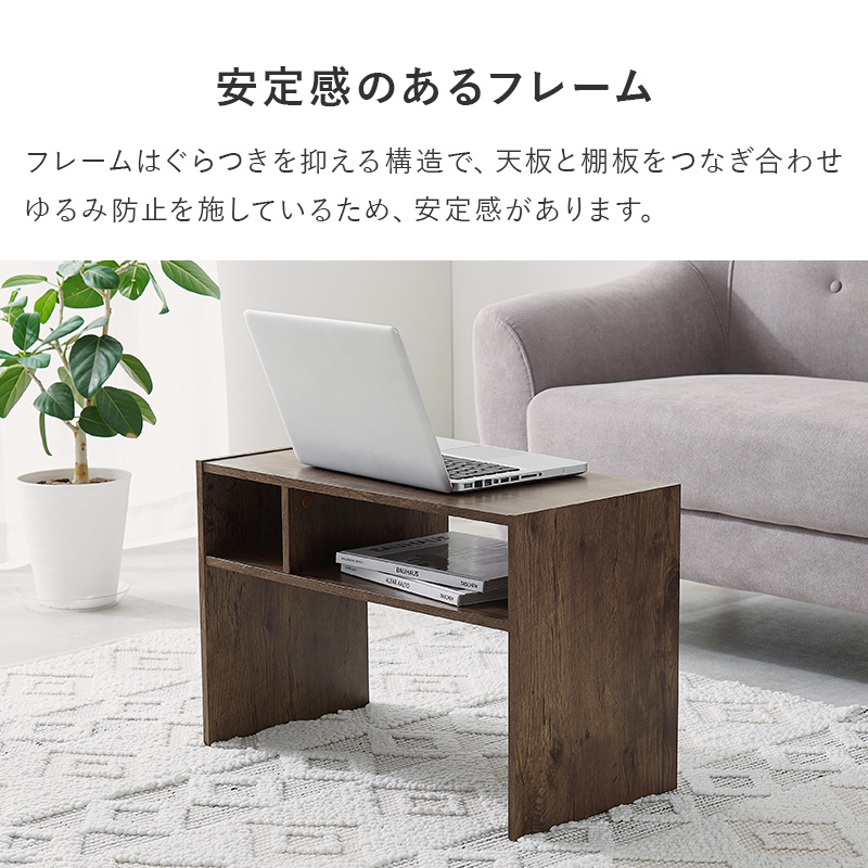 使うシーンに合わせてオープン収納付きのサイドテーブルからローテーブルに置き換え可能な2WAY仕様。木目調のシンプルデザインがお部屋になじみます。