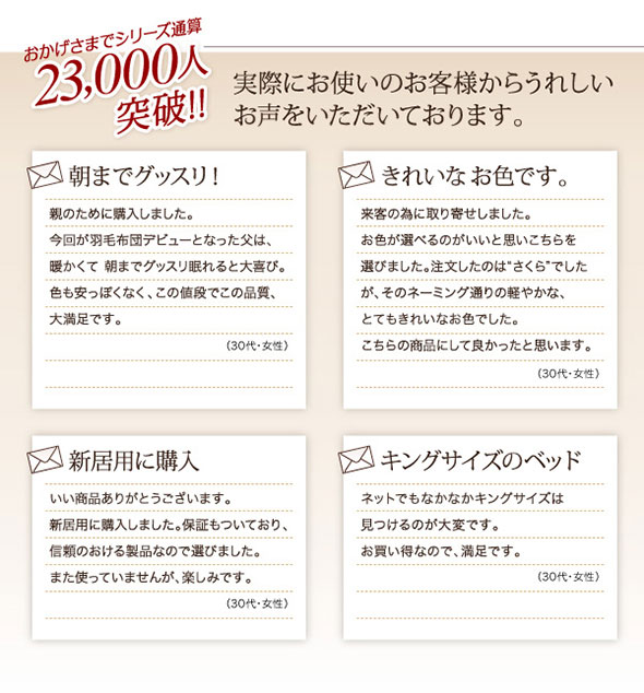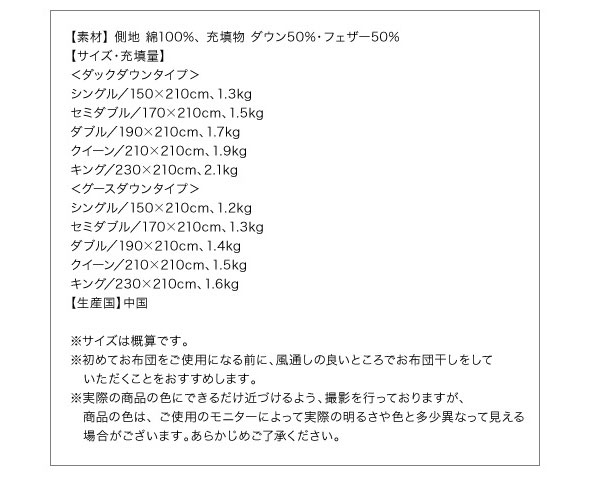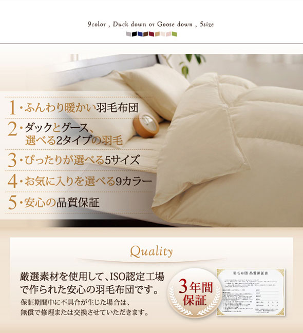 9色から選べる!羽毛掛布団【ダックダウンタイプ】クイーンの商品写真