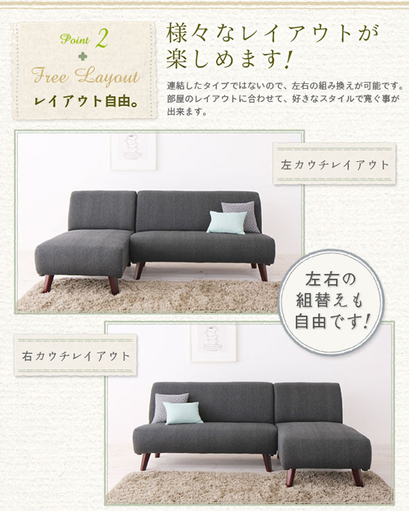 連結したタイプではないので、左右の組み換えが可能です。部屋のレイアウトに合わせて、好きなスタイルで寛ぐ事が出来ます。単独で使用もできます!