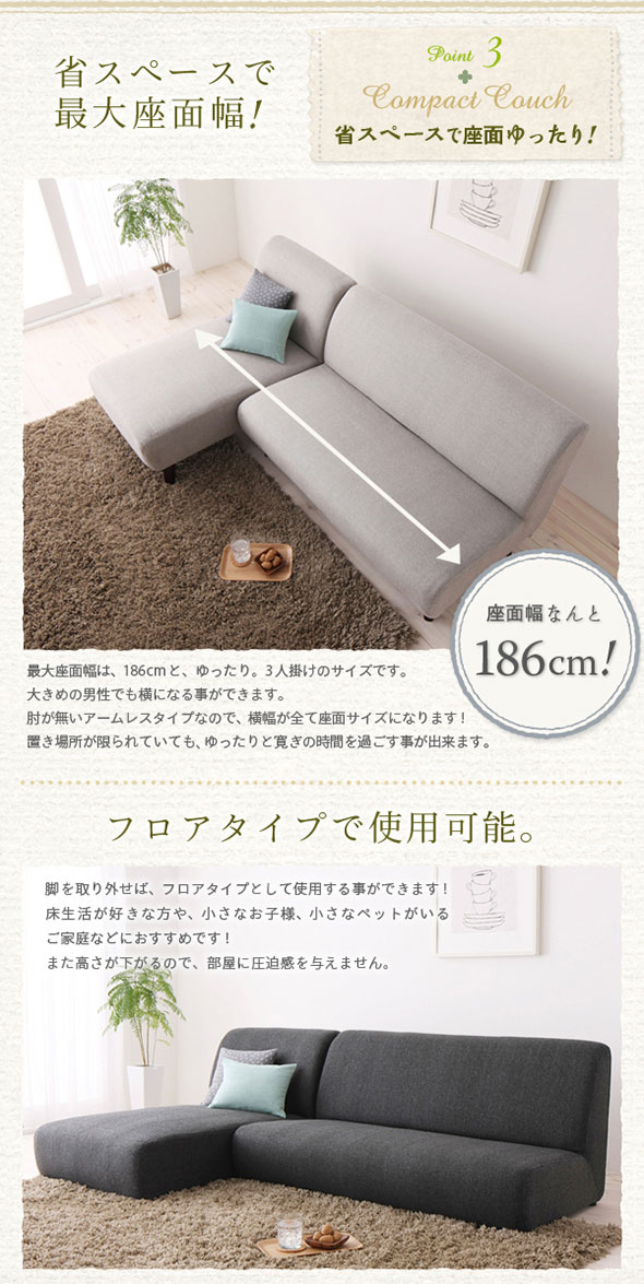 最大座面幅は、186_と、ゆったり。3人掛けのサイズです。