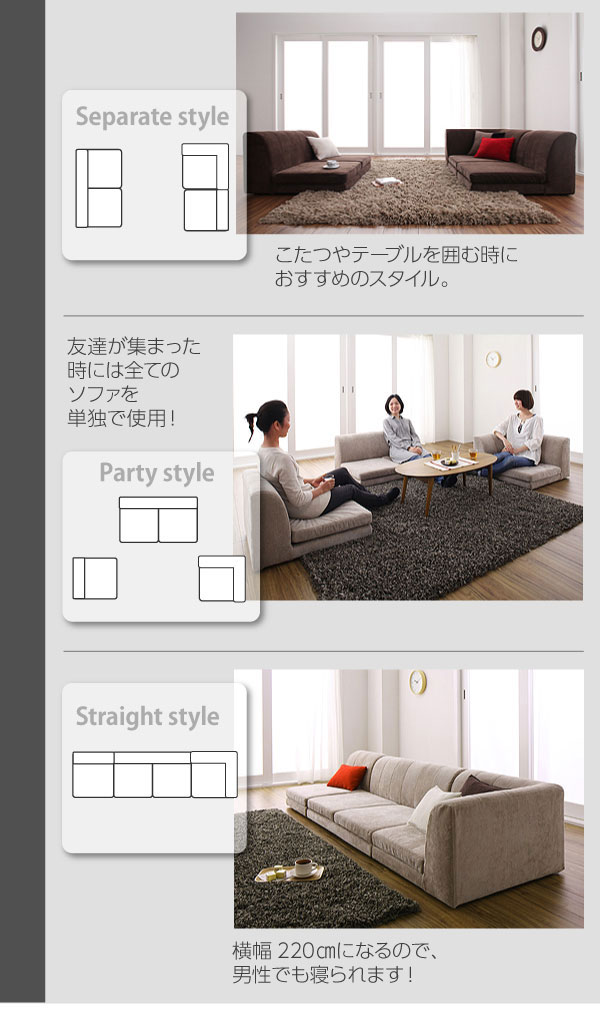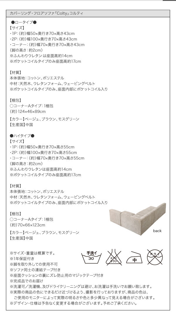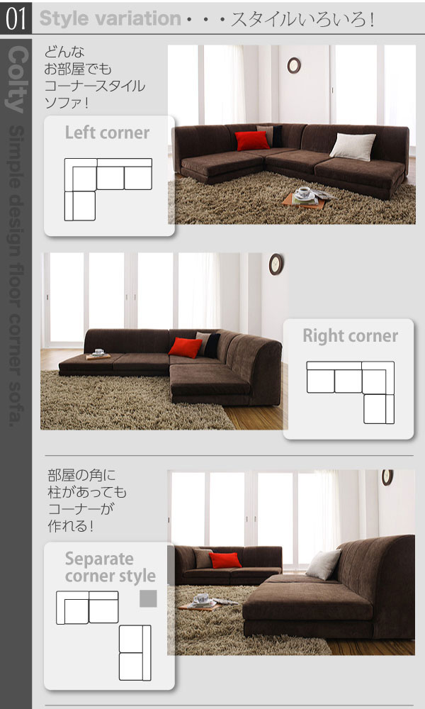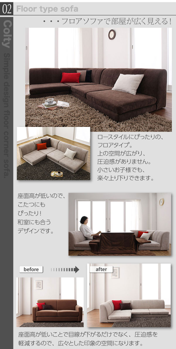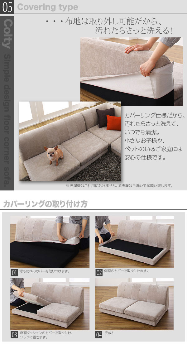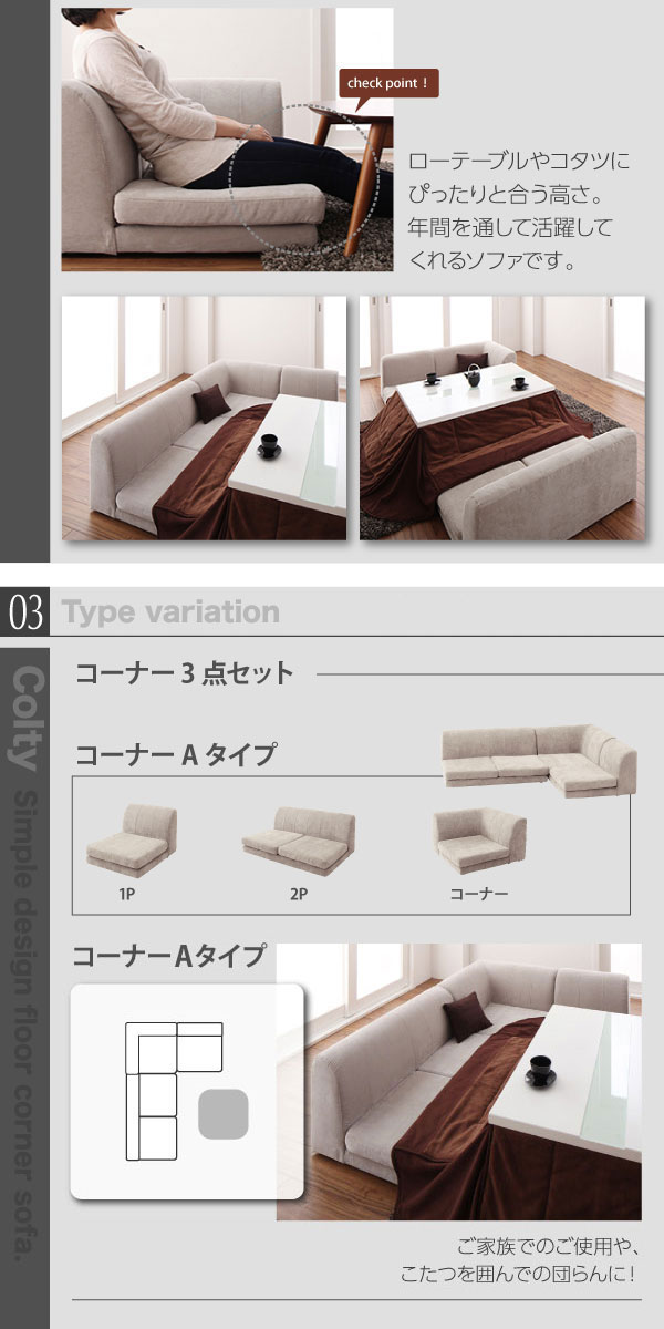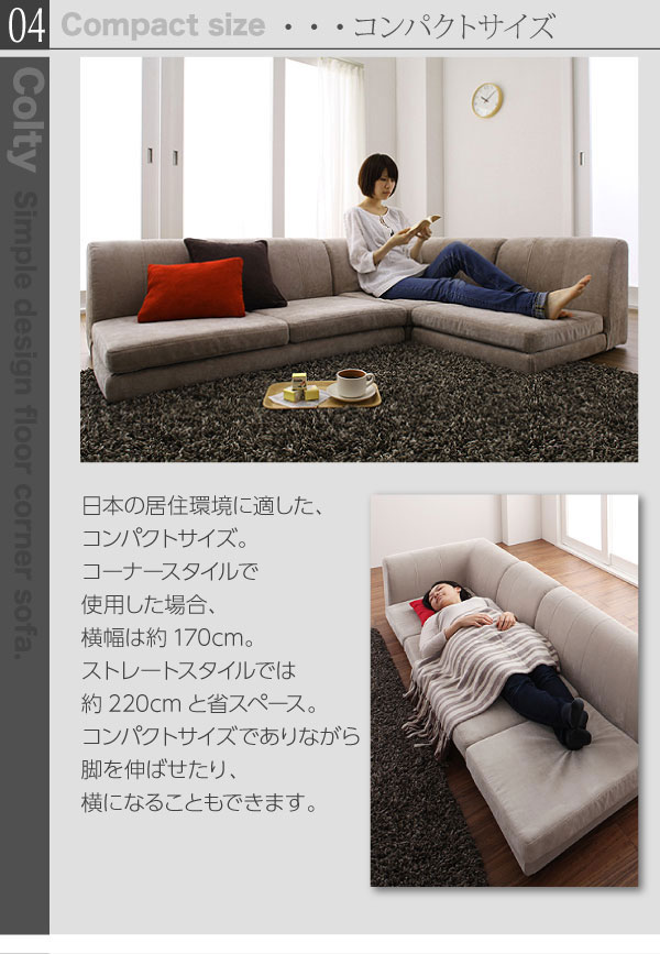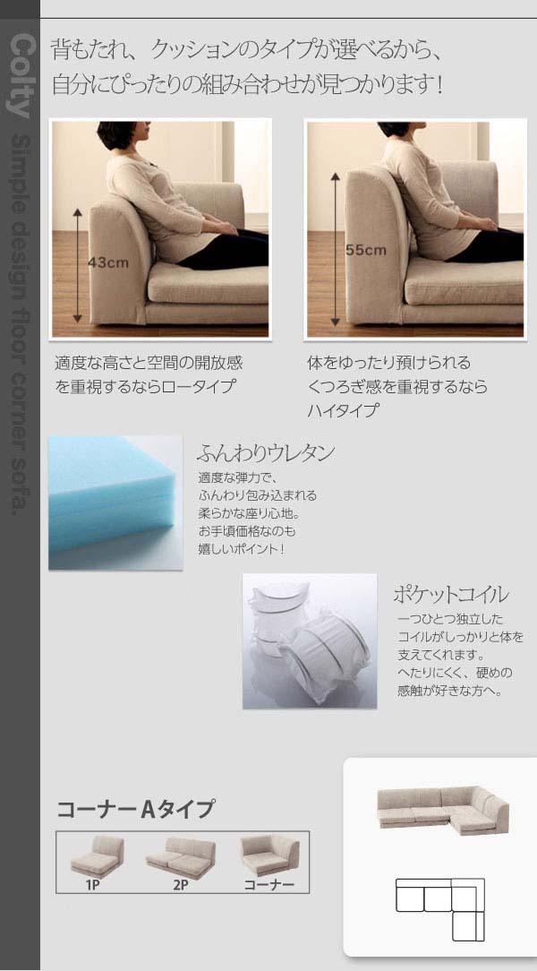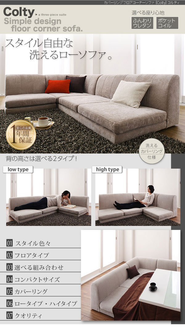 • 品名 カバーリングコーナーローソファー COLTY【コルティ】コーナーAタイプ(1P+2P+コーナー)ふんわりウレタン【ロータイプ】 送料無料(北海道・沖縄別途送料・離島へは配送不可)