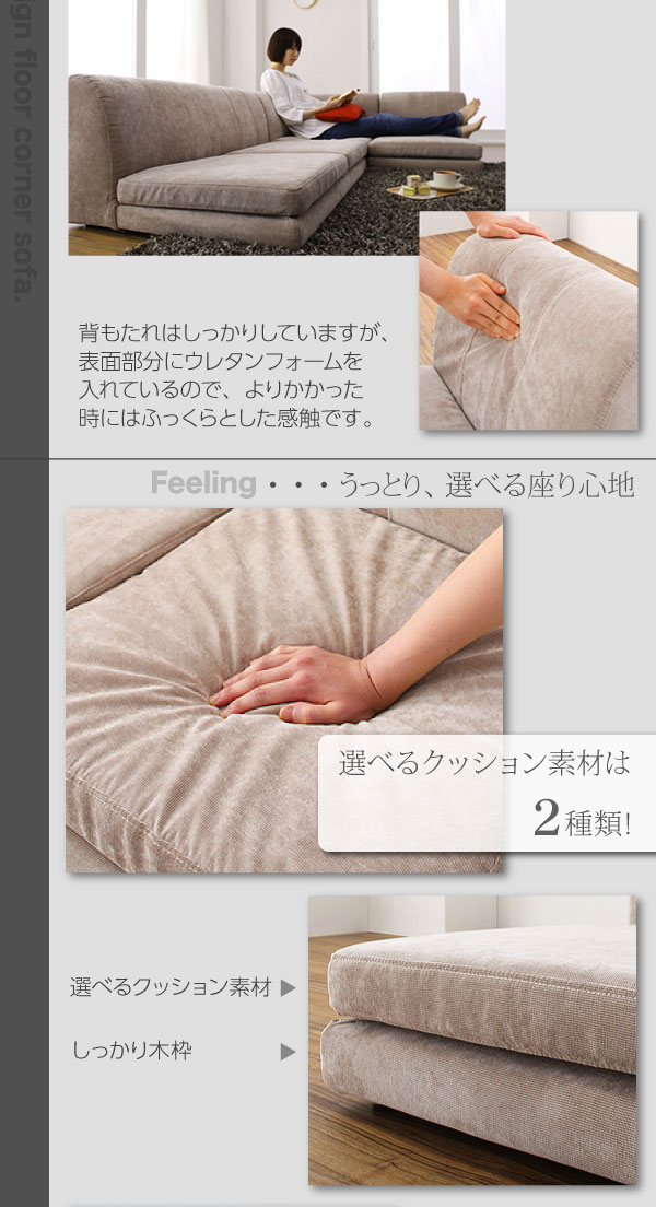 カバーリングコーナーローソファー COLTY【コルティ】コーナーAタイプ(1P+2P+コーナー)ふんわりウレタン【ロータイプ】 送料無料(北海道・沖縄別途送料・離島へは配送不可)の商品写真