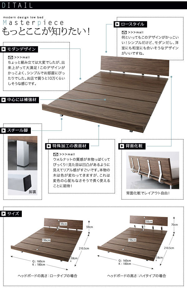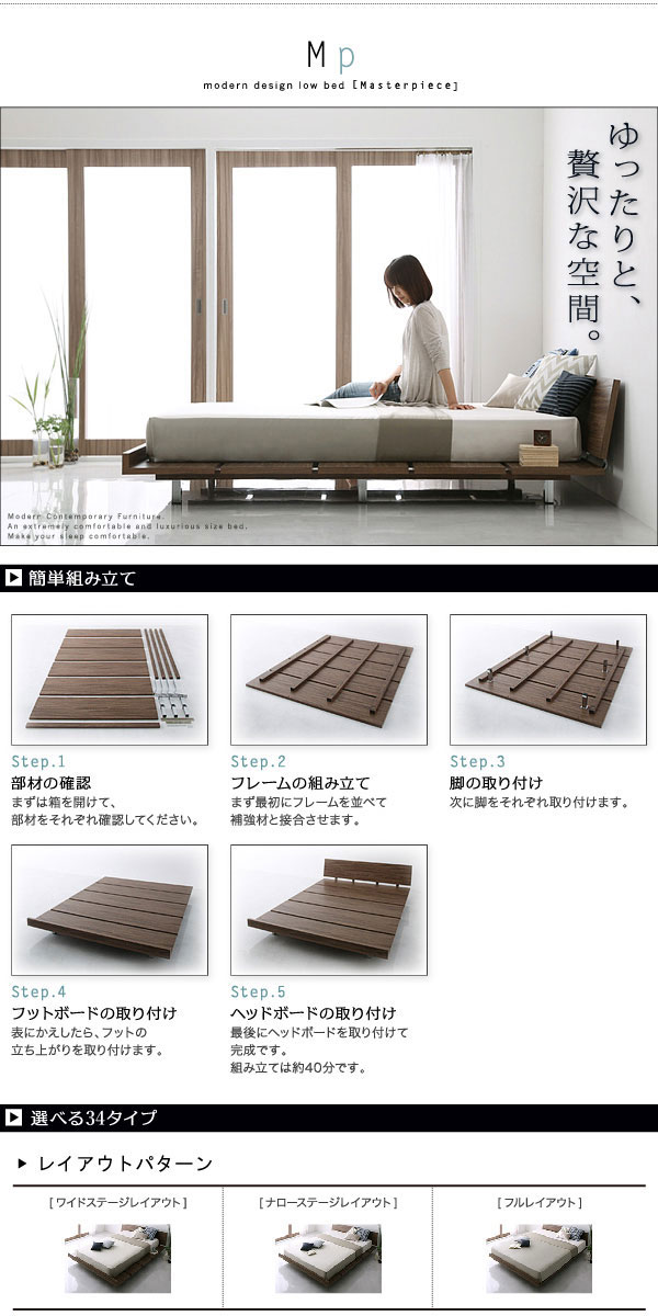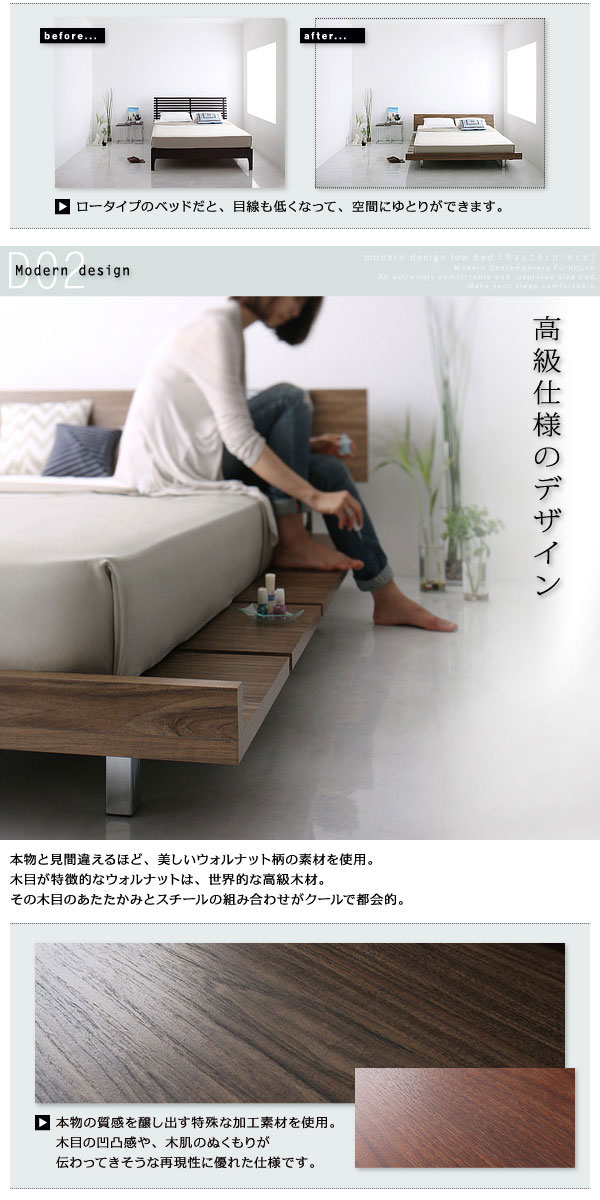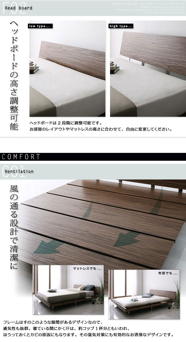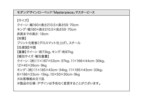 • 品名 北欧ベッド ローベッド Masterpiece【マスターピース】クイーンフレーム ベッドフレームのみ