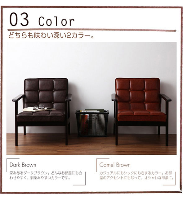 PVCレザーだから、飲み物などをこぼしても、すぐにサッとひと拭きするだけで、きれいを保てます。