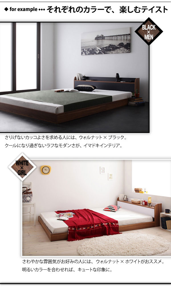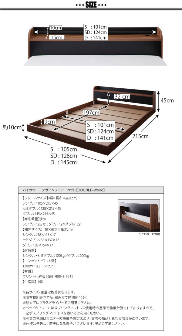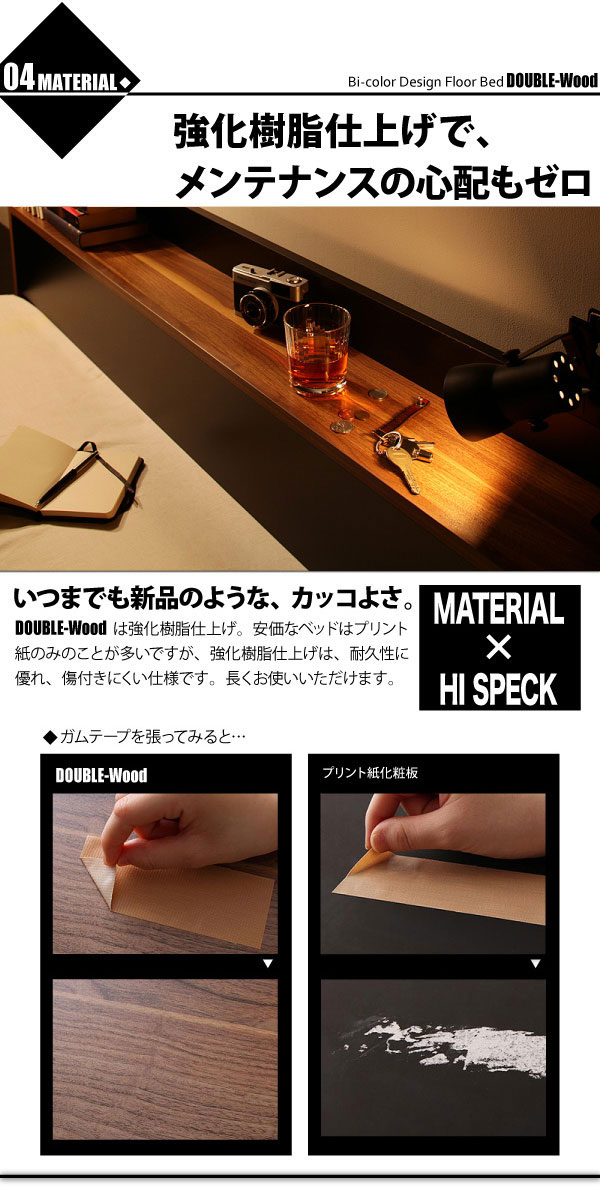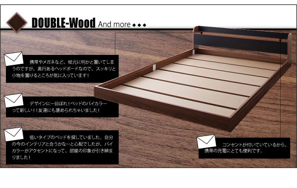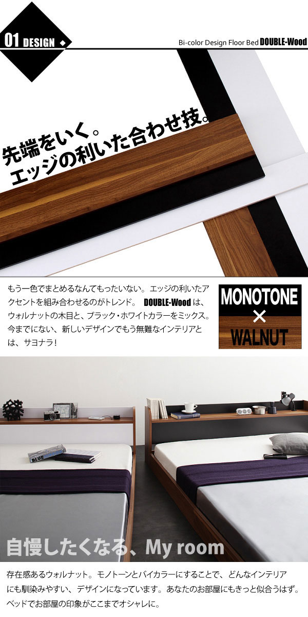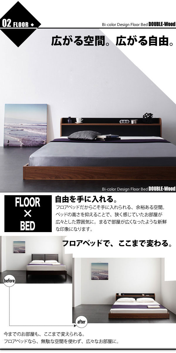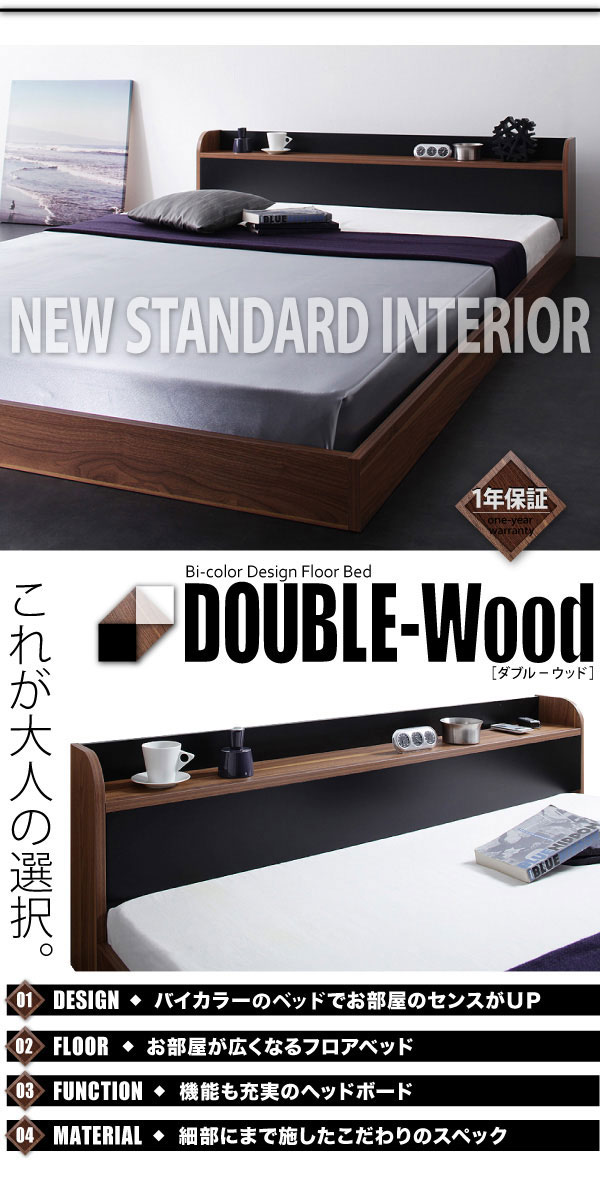 • 品名 棚・コンセント付きバイカラーデザインフロアベッド【ダブルウッド】ベッドフレームのみ ダブル