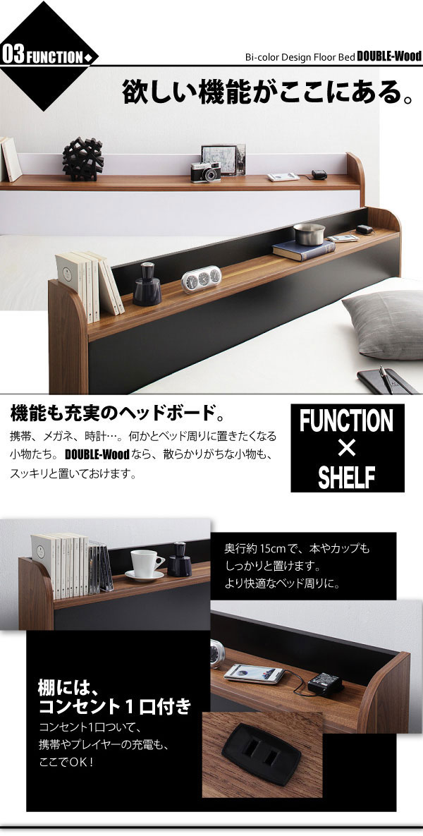 棚・コンセント付きバイカラーデザインフロアベッド【ダブルウッド】ベッドフレームのみ ダブルの商品写真