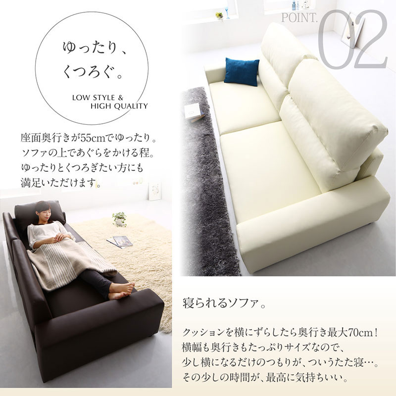 • 品名 ローソファー レザー LEX【レックス】ロータイプ 2.5人掛けローソファー 送料無料(北海道・沖縄別途送料・離島へは配送不可)