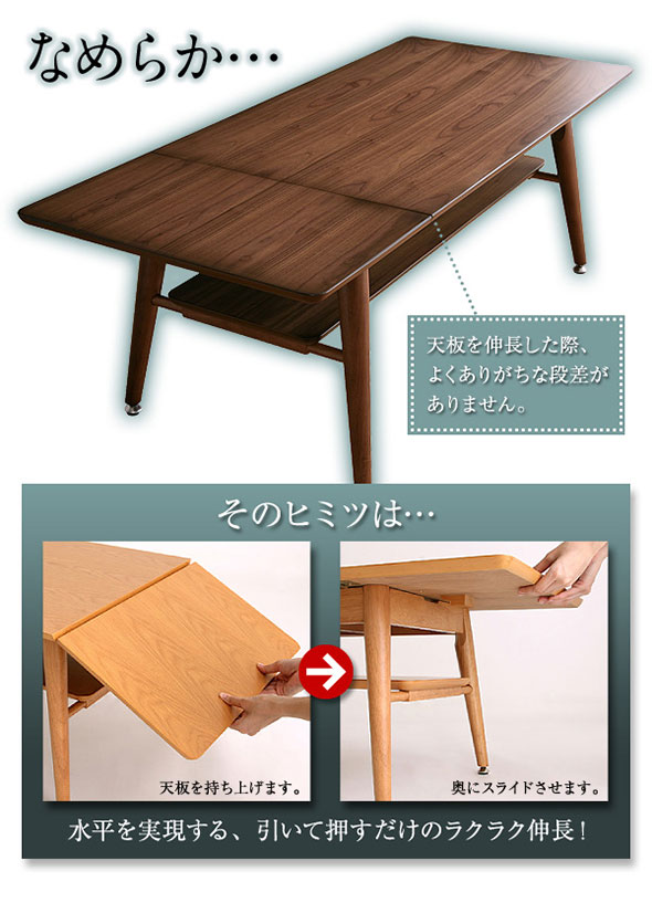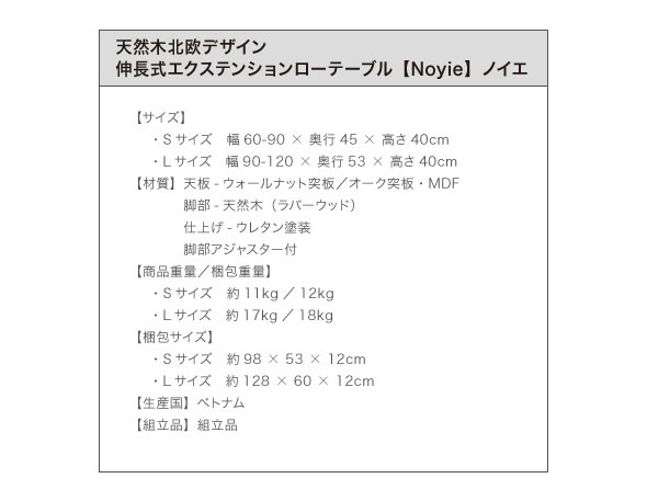 • 品名 天然木北欧デザイン伸長式ローテーブル Noyie【ノイエ】 Sサイズ(幅60-90)