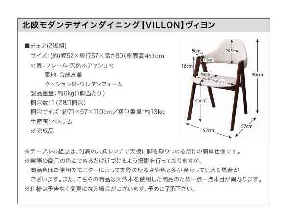 • 品名 北欧モダンデザインダイニング VILLON【ヴィヨン】チェア2脚組 送料無料(北海道・沖縄別途送料・離島へは配送不可)