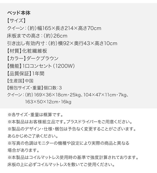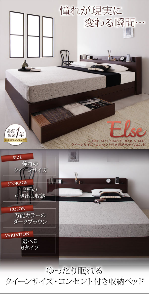 • 品名 コンセント付き収納ベッド Else【エルゼ】ベッドフレームのみ クイーン