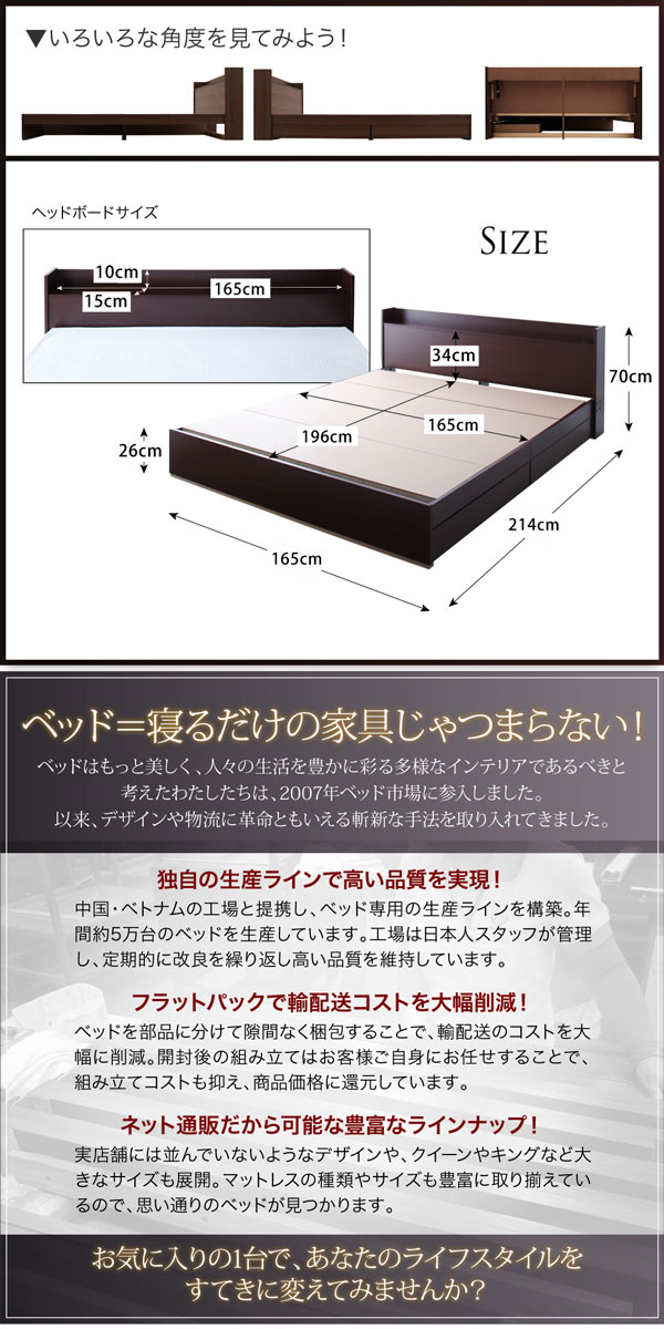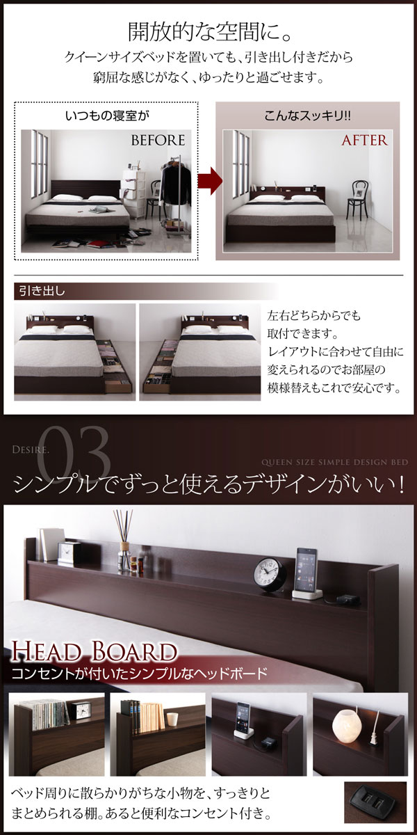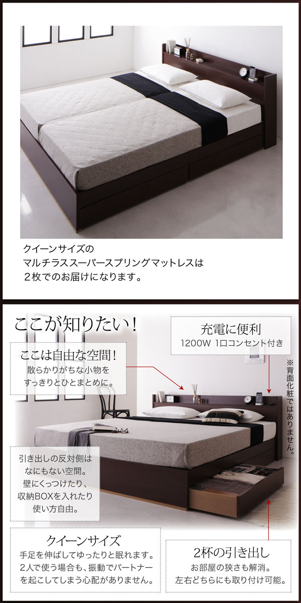 コンセント付き収納ベッド Else【エルゼ】ベッドフレームのみ クイーンの商品写真