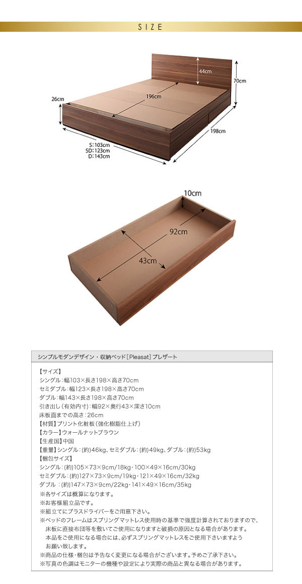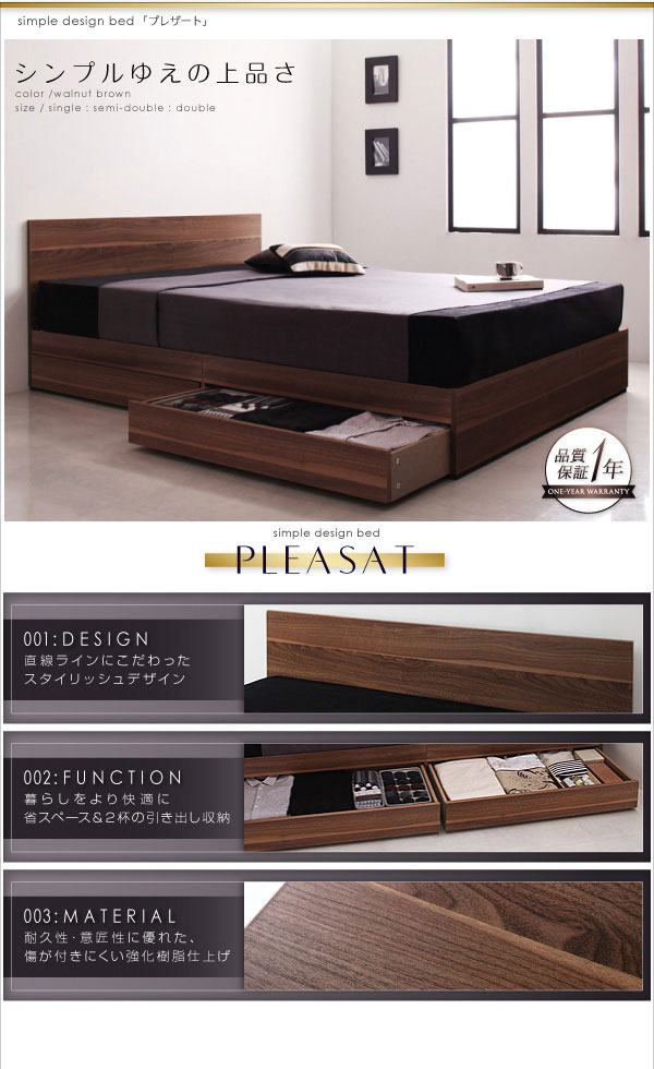 • 品名 収納ベッド Pleasat【プレザート】ベッドフレームのみ ダブル