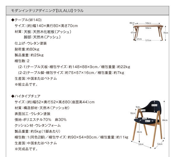 • 品名 北欧モダンデザインダイニングULALU【ウラル】ハイタイプチェア2脚組 送料無料(北海道・沖縄別途送料・離島へは配送不可)