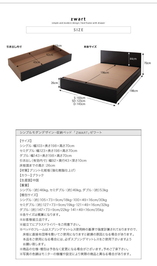 • 品名 収納ベッド ZWART【ゼワート】ベッドフレームのみ ダブル