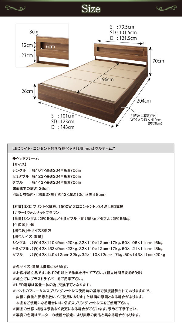 • 品名 収納ベッド Ultimus【ウルティムス】ベッドフレームのみ セミダブル